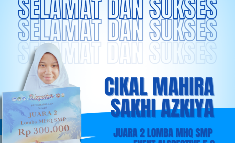 Alhamdulillah.. Selamat kepada Cikal Mahira Sakhi atas prestasi Juara 2 Lomba MHQ SMP yang di raih dalam Event Alspective 5.0 …