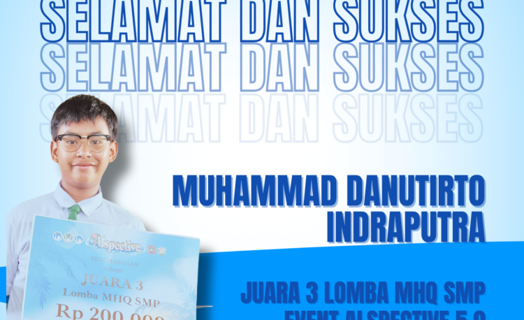 Alhamdulillah.. Selamat kepada Muhammad Danutirto Indraputra atas prestasi Juara 3 Lomba MHQ SMP yang di raih dalam Event Alspective 5.0 …